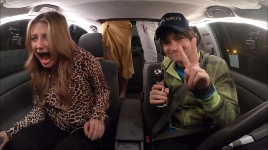 This horror film by writer/director John Berardo centers around a fraternity house where a group of sexist frat bros are planning a party. There’s also a masked killer in a hoodie who uses a power drill to murder people all over campus. The social media angle is that the characters’ cell-phone messages and social media feeds float around their heads as they go about their daily business, communicating both through spoken dialogue and written text.